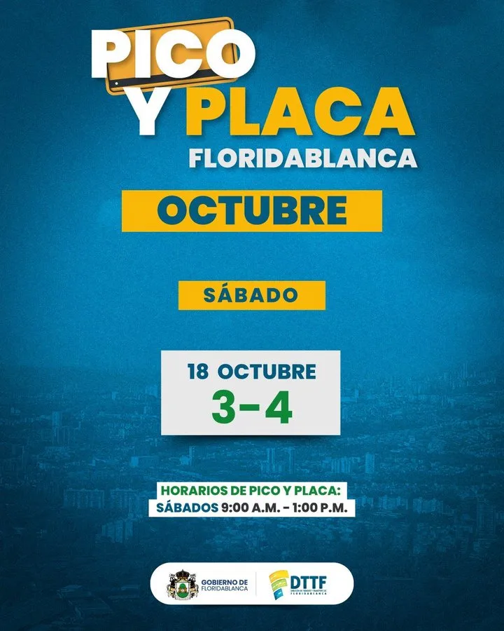 En consecuencia, la restricción vehicular para este sábado, 18 de octubre, afecta a los vehículos cuyas placas terminen en los dígitos 3 y 4.