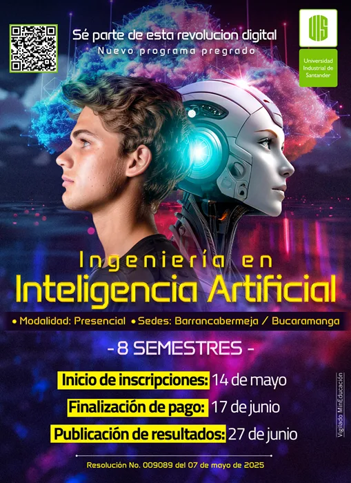 La Universidad Industrial de Santander obtuvo el registro calificado para su nuevo programa de Ingeniería en Inteligencia Artificial, convirtiéndose en la segunda universidad en Colombia en ofrecer este programa, después de la Universidad de Caldas, y en la primera en el oriente colombiano en liderar esta apuesta académica.