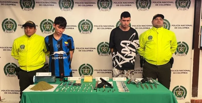 En Piedecuesta, también por tráfico de drogas, pero además por alquiler de armas, la Sijin capturó en flagrancia a dos presuntos integrantes de una red criminal.