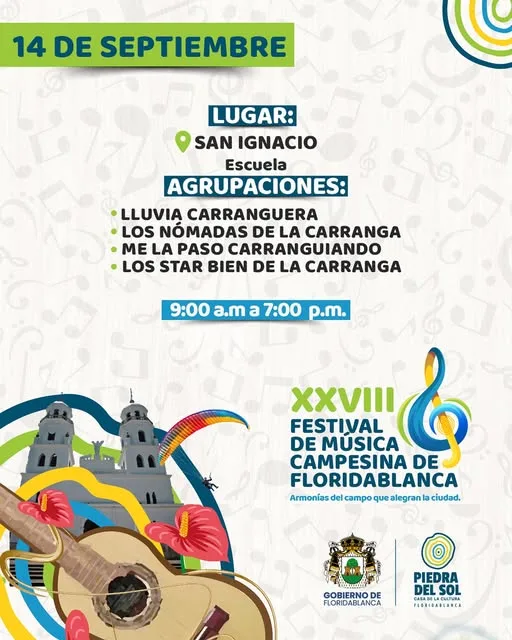 Los florideños, y en general los residentes en el área metropolitana de Bucaramanga que gusten pasar un domingo alegre de carranga y gastronomía típica, están invitados a participar en el XXVIII Festival de Música Campesina de Floridablanca 2025.