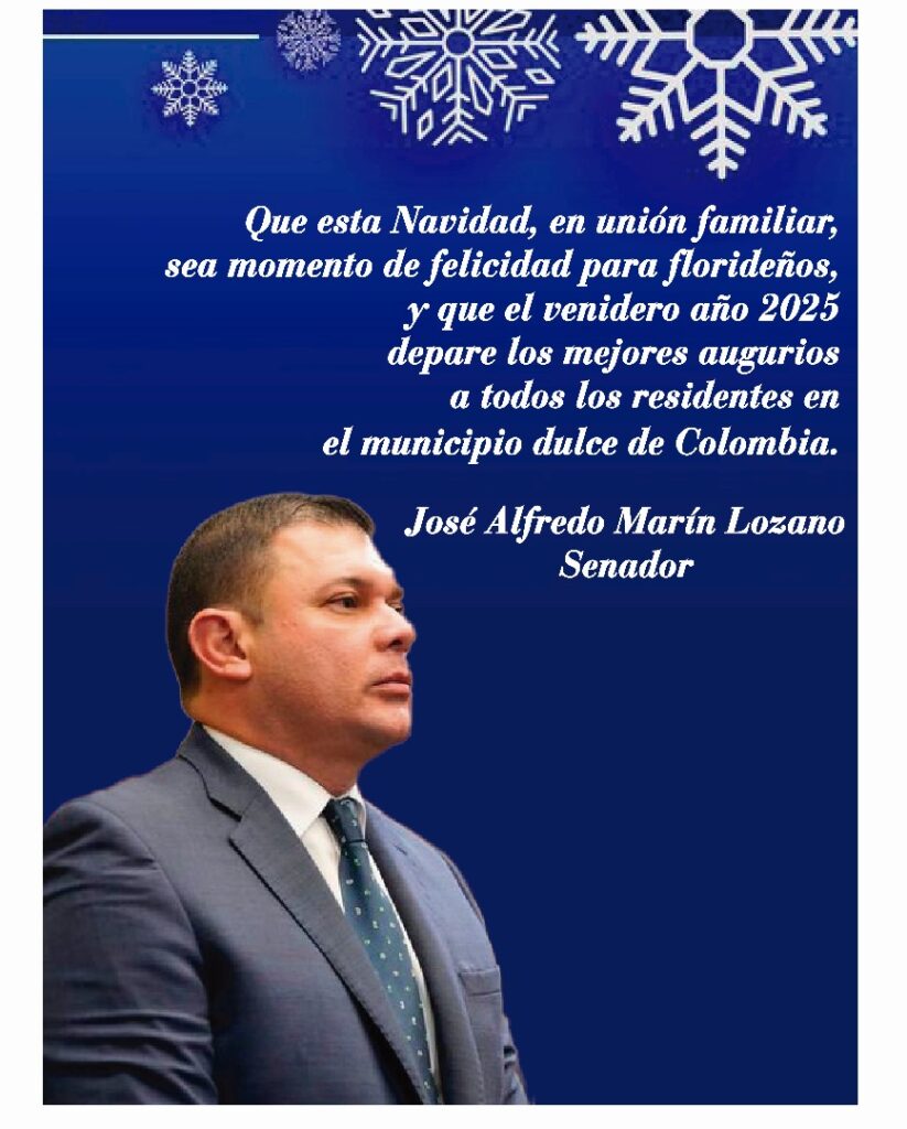 Floridablanca El Senador José Alfredo Marín les desea ¡Feliz Navidad! a las familias florideñas Redacción Ciudad Florida 12/21/2024 Cuando hablamos de qué es la Navidad, sin duda es una palabra que relacionamos con celebraciones, familia, regalos, buena comida, paz, amor y perdón. Es una época del año que trae consigo alegría, esperanza, generosidad y optimismo en las personas. Compartir el articulo: Tags: jose alfredo marin lozano navidad floridablanca politicos colombianos politicos florideños senado colombia Post navigation Anterior Celebra una Navidad saludable: consejos para evitar excesos y cuidar tu saludSiguiente Los comuneros transformará la conectividad vial de Santander. Firma Histórica Deja una respuestaTu dirección de correo electrónico no será publicada. Los campos obligatorios están marcados con *Comentario * Nombre * Correo electrónico * Web Guarda mi nombre, correo electrónico y web en este navegador para la próxima vez que comente.