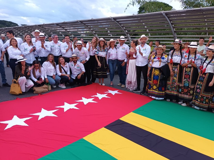 El gobernador de Santander, Juvenal Díaz Mateus y el alcalde de Bucaramanga, Jaime Andrés Beltrán, celebraron, junto a sus respectivas comitivas, la conquista del Récord Guinness. Foto: Ciudad Florida