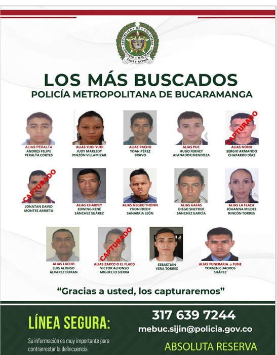 El alcalde de Bucaramanga, Jaime Andrés Beltrán actualizó y publicó la lista de los 14 delincuentes más buscados del área metropolitana.