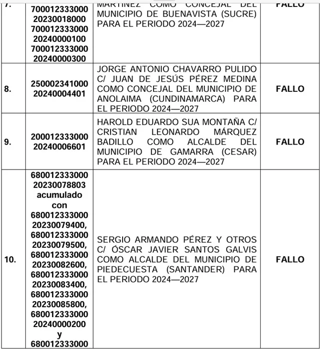 Entre la gran cantidad de casos previstos para este jueves, 5 de junio, el Consejo de Estado tiene agendado el fallo que decidirá el futuro del acalde de Piedecuesta, Oscar Santos Galvis.