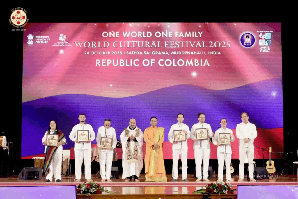 En el evento, celebrado en las ciudades de la India, Sathya Sai Grama, Muddenahalli, Karnataka, hacen presencia cerca de 100 delegaciones de los 6 continentes e Ikara Wayra representa a Colombia.