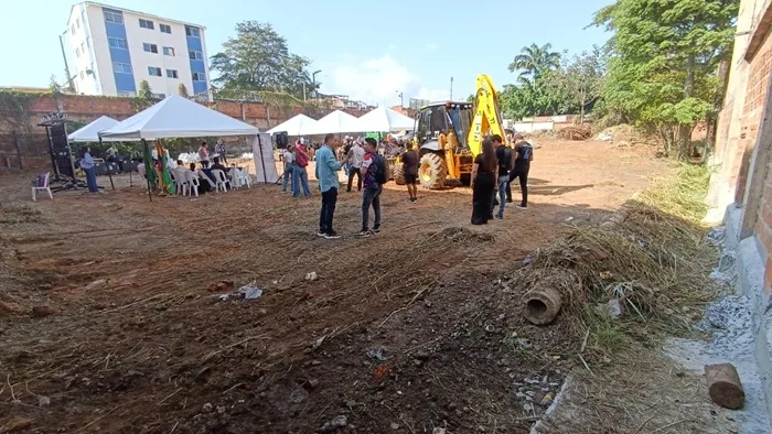 El acalde de Floridablanca, José Fernando Sánchez, junto a su secretario de Infraestructura, Gerson González, los concejales Wilson Ardila Parra, Diego Mancilla y Daniel Acuña, el representante de la iglesia católica y habitantes de la comunidad, dio inicio este martes a la construcción del Centro de Salud del Barrio La Cumbre.