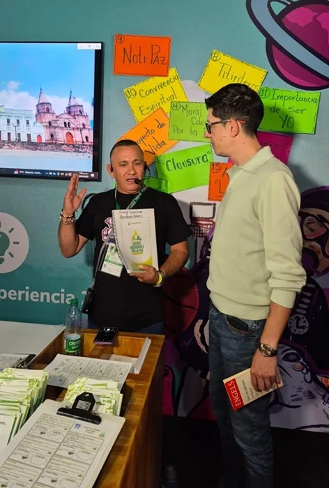 En el marco de la trigésima séptima versión de la Feria Internacional del Libro que se está celebrando en Bogotá del 25 de abril al 11 de mayo de 2025, fue invitado el tutor del Programa de tutorías para el Aprendizaje y la formación Integral PTA/FI 3.0 el Tutor Omar Alberto Hernández Blanco, donde fue socializado el Centro del Interés «LÍDERES MEDIADORES POR LA PAZ » de su autoría, que está siendo desarrollado en el Instituto de Promoción Social del municipio de Piedecuesta, Santander y que tiene como objetivo: brindar a los niños y jóvenes de las instalaciones públicas y privadas la oportunidad para que aprendan a vivir juntos, a resolver conflictos de manera concertada, a escuchar y a negociar con quien piensa distinto, fomentando una cultura de paz, a través de estrategias lúdico-pedagógicas que contribuyan a fortalecer valores, para alcanzar una sana convivencia cambiando la justicia punitiva por Justicia Restaurativa.