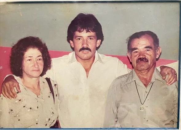 Días antes del accidente, hace 30 años, Luis Jesús Delgado con sus padres.