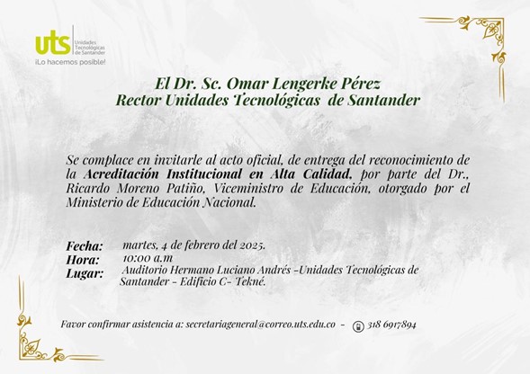 El Gobierno Nacional entrega oficialmente este martes en Bucaramanga la máxima acreditación a una institución educativa como las Unidades Tecnológicas de Santander, dirigidas por Omar Lenguerke Pérez.