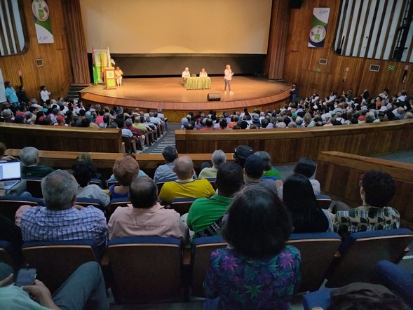 En el auditorio caben mil personas, pero no alcanzaron las sillas para permitir el ingreso de todos.
