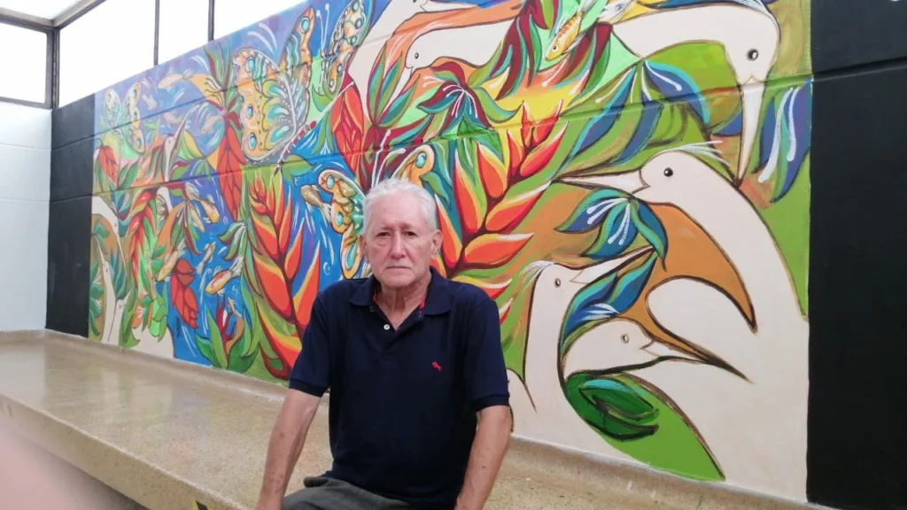 Entre sus obras más representativas está el mural que adorna el Concejo de Floridablanca: “El valle de las garzas y las mariposas”, el nombre antiguo del municipio en la época de la Colonia.