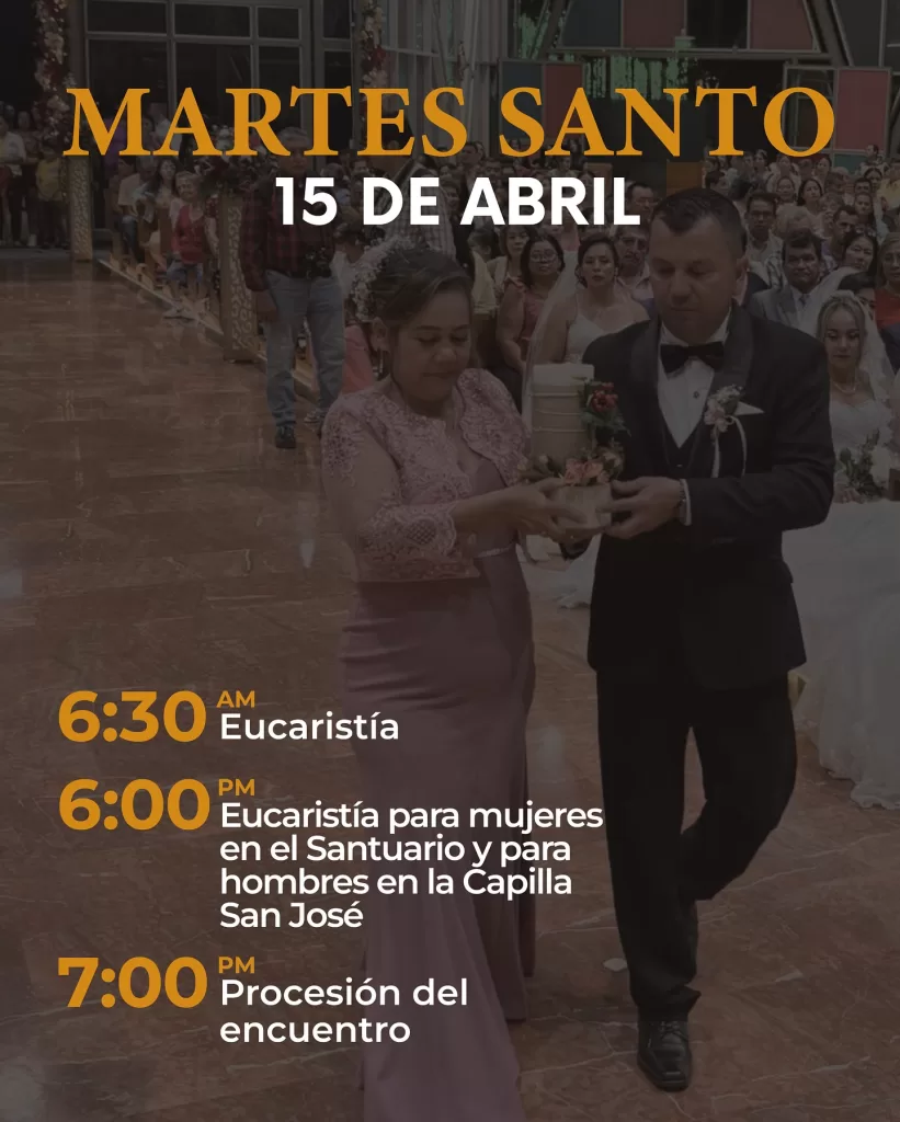 6:00 p.m. Eucaristía para mujeres (Santuario) y para hombres (Capilla San José)