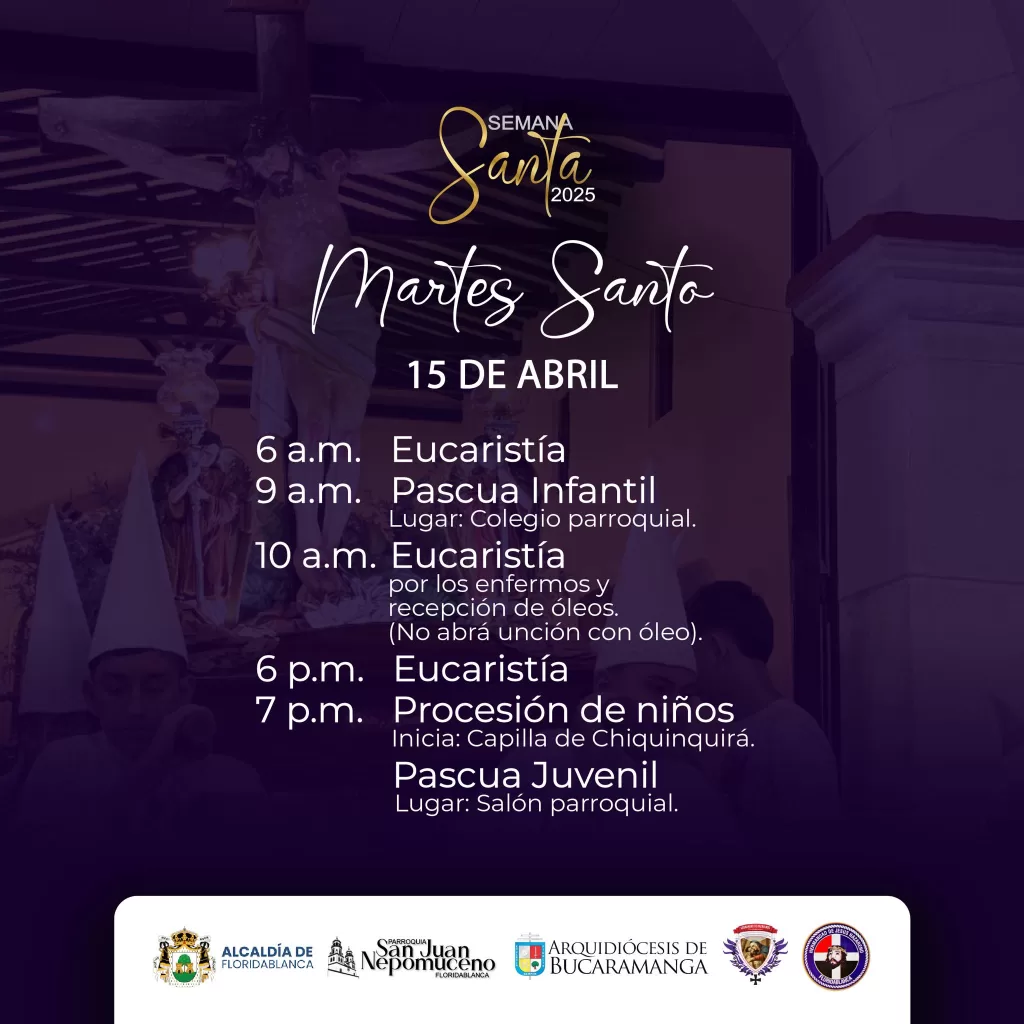 Martes Santo: Reflexión y Actividades Litúrgicas en el área metropolitana de Bucaramanga
