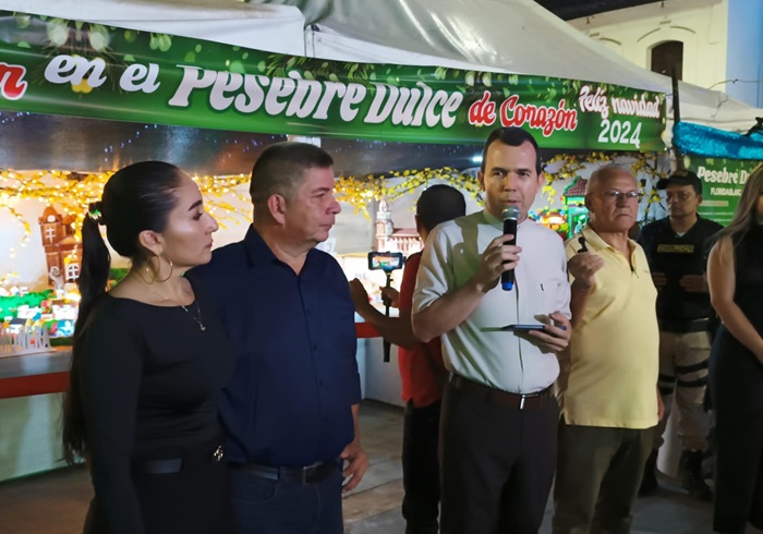 Cristian Jiménez, empresario del dulce de Floridablanca y creador del pesebre dulce más grande del mundo, se halla satisfecho de mostrar el pesebre en todo el centro del parque principal del municipio.