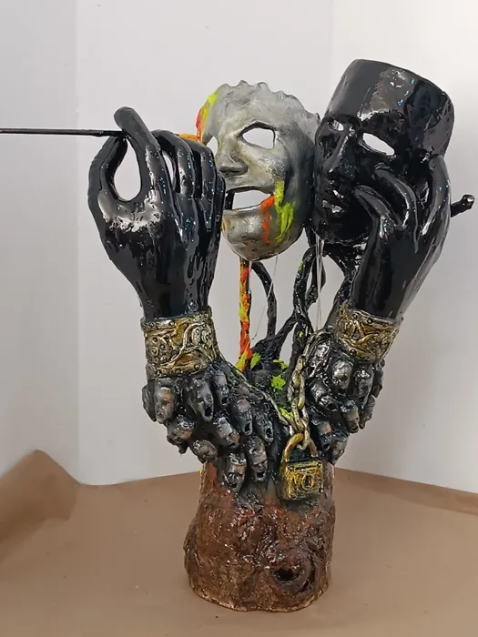 Escultura ganadora «Penitenciarte 2025» titulada Expresiones cuya autoría corresponde al privado de la libertad Néstor Fabián Camacho Cepeda