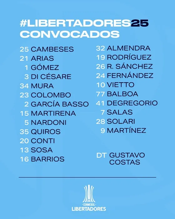 Estos son los convocados de Racing